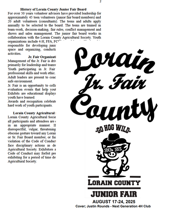 Download the Junior Fair Book for complete guidelines, schedules, and entry requirements for all Lorain County Junior Fair competitions and exhibits.